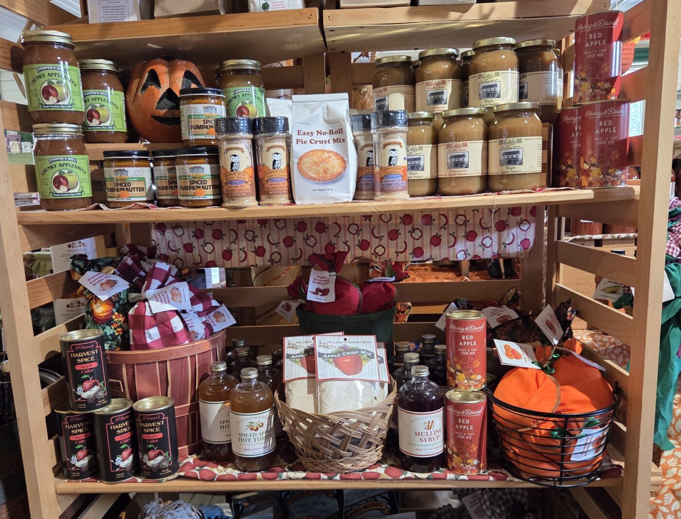 At the store, find fall inspired flavored tea, a Pumpkin Spice Latte kit, maple sugar sweetner and more for your morning coffee or tea. Along with a sweet collection of jellies, syrup, and pancakes.